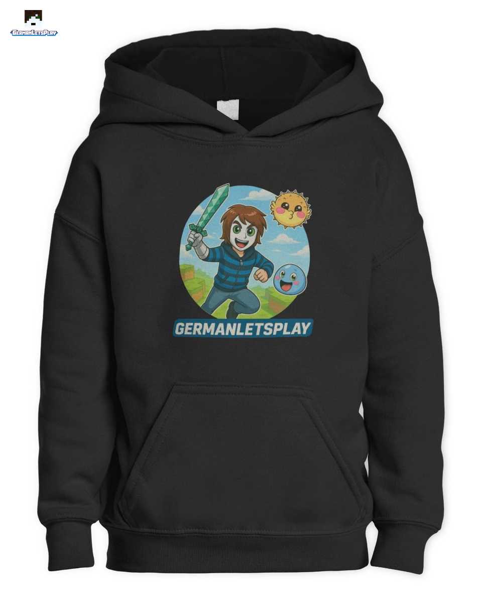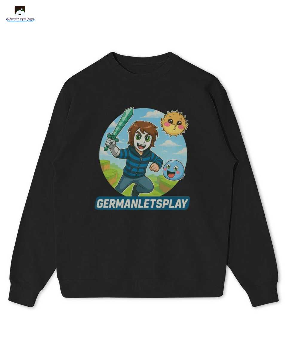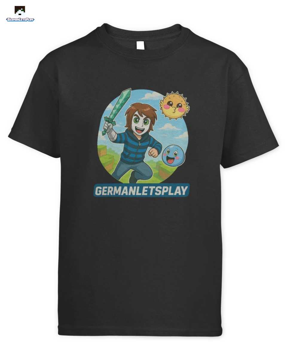 Bist du bereit für eine epische Mission an der Seite von GermanLetsPlay? Mit diesem fantastischen “Blockwelt Abenteuer” Design zeigst du allen, dass du ein echter Fan bist! Begleite Manuel, den liebenswerten Puffi und den treuen Klumpi auf ihrer Reise durch eine Welt voller Blöcke, Gefahren und jeder Menge Spaß. Das detailreiche Cartoon-Motiv mit der ikonischen Maske, dem gestreiften Pulli und dem mächtigen Diamantschwert ist ein absolutes Muss für jeden jungen Gamer und Zocker.