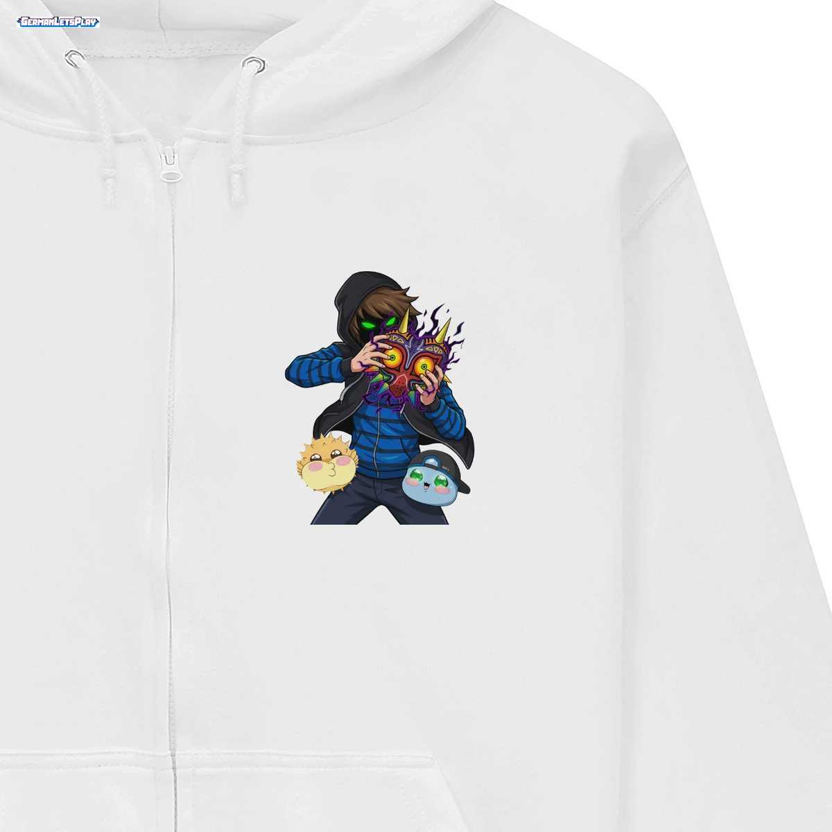 Dieses T-Shirt ist eine Hommage an die Legenden. Es kombiniert GermanLetsPlay in seinem ikonischen Look mit der mystischen, von Majora’s Mask inspirierten Maske und seinen treuen Begleitern Puffi und Klumpi in einem detailverliebten Anime-Stil, der jede Fan-Seele berührt.