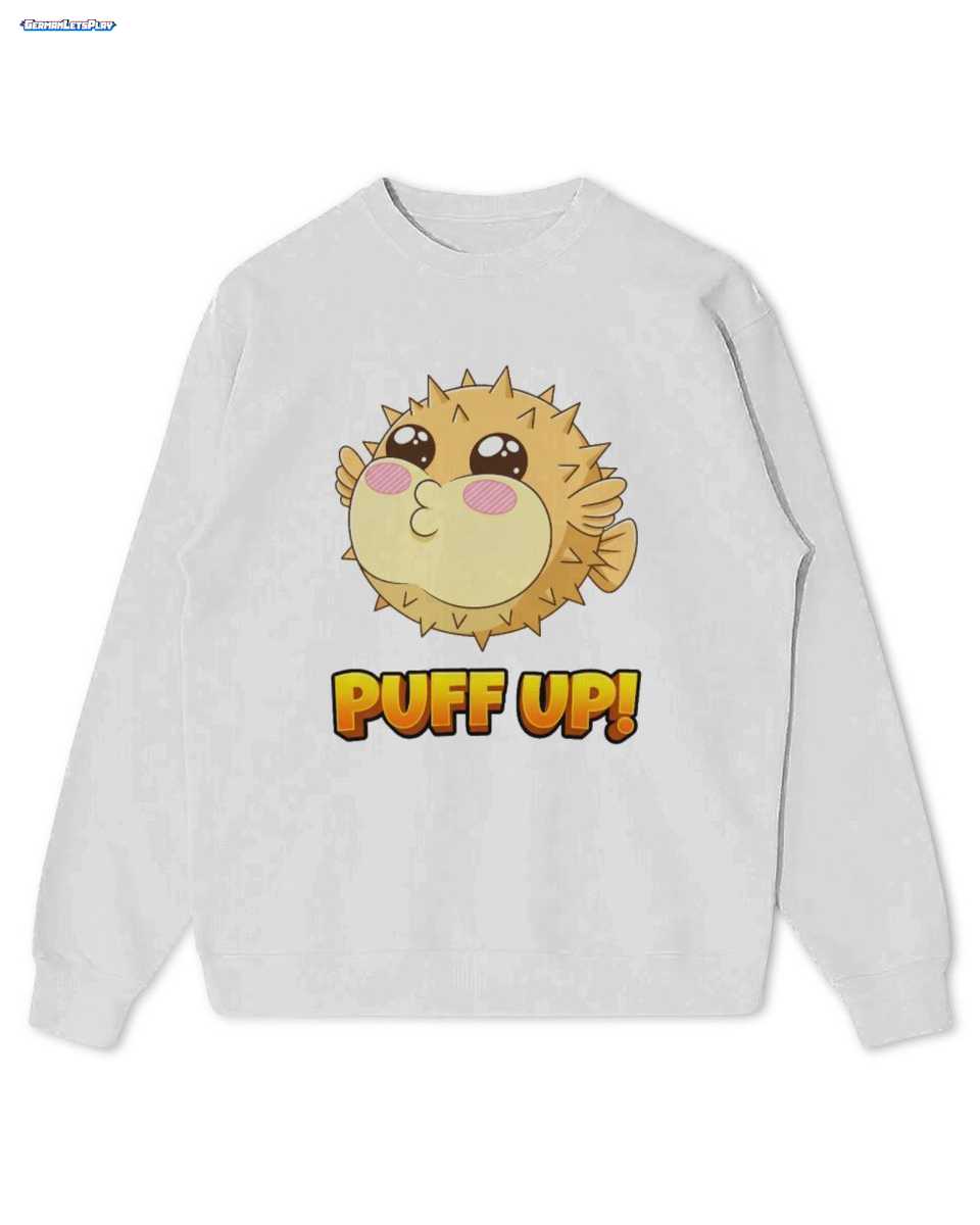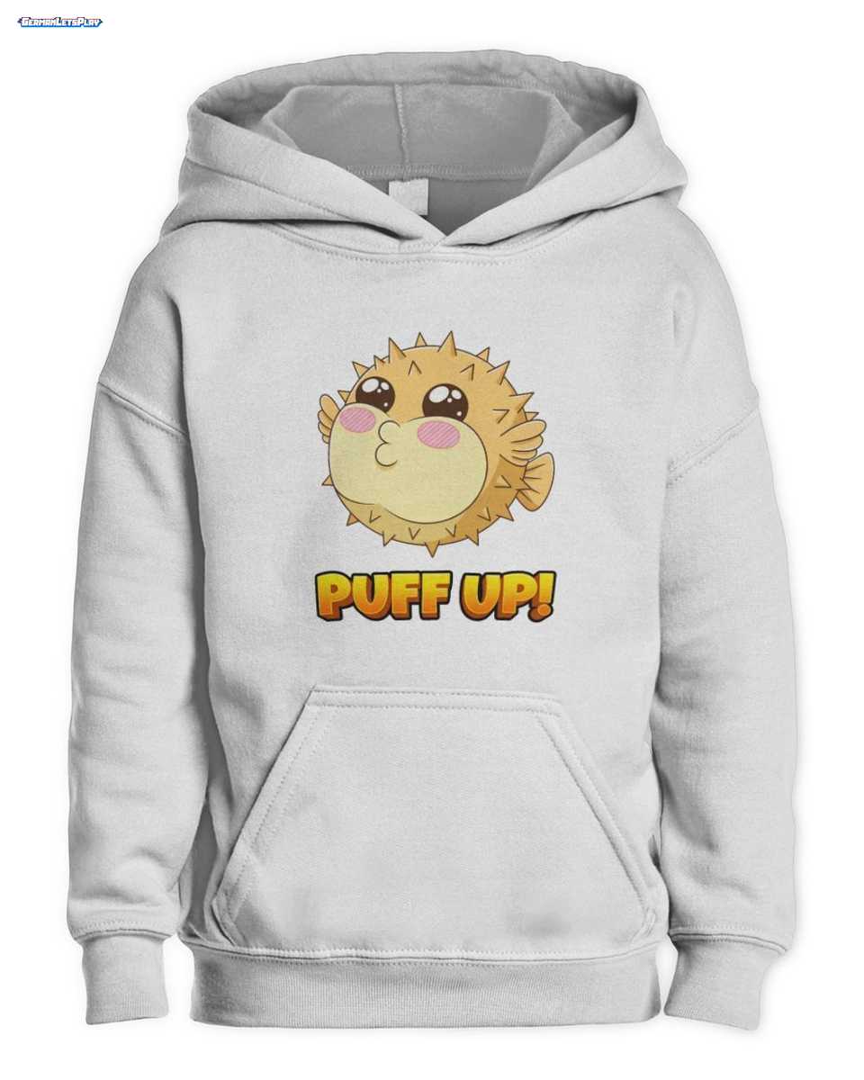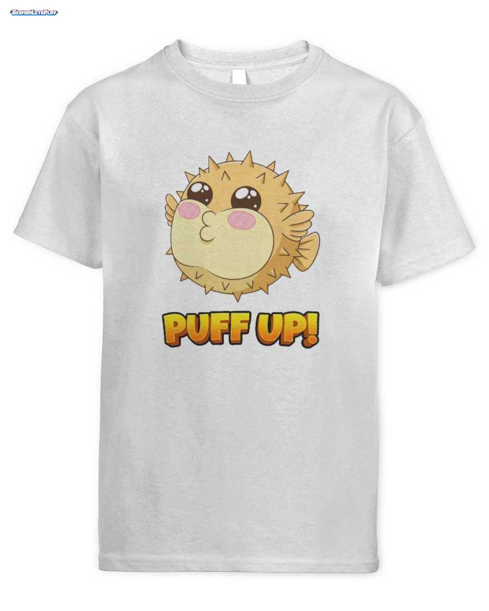 Das Herzstück dieses Shirts ist das bezaubernde Kawaii Pufferfisch Design, inspiriert von Puffi, dem beliebten Gaming Maskottchen. Der süße Kugelfisch mit großen Kulleraugen und der humorvolle ‘PUFF UP!’-Schriftzug in leuchtendem Orange machen es zu einem echten Hingucker. Es ist ein lustiges Fischmotiv Kinder Shirt, das Freude und positive Energie ausstrahlt.